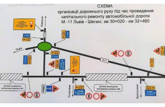 «Об’їзд буде здійснюватись згідно з погодженої Схеми організації дорожнього руху в Управлінні патрульної поліції у Львівській області та у Службі автодоріг, автодорогою Т-14-25 Миколаїв – Городок – Жовква – Кам’янка-Бузька – Бібрка, вулицею Комарнівською в Городку, автодорогою С140330 Довжанка-Черляни та в зворотньому напрямку. Cхему організації дорожнього руху під час проведення капітального ремонту автомобільної дороги М-11 Львів-Шегині інформують відповідні тимчасові дорожні знаки», – розповіли також у Службі автомобільних доріг у Львівській області.