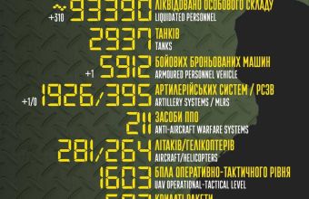 особового складу / personnel ‒ близько/ about 93390 (+310) осіб ліквідовано / persons were liquidated,