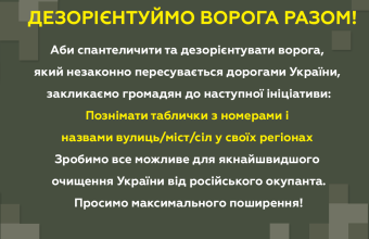 Про це Укравтодор повідомив у ФБ, пише Dailylviv.com: "Демонтовуємо дорожні знаки на усіх дорогах країни. Пріоритет #1 — вказівні знаки, назви населених пунктів. У ворога жалюгідний зв‘язок, вони не орієнтуються на місцевості. Давайте допоможемо їм потрапити прямісінько у пекло".