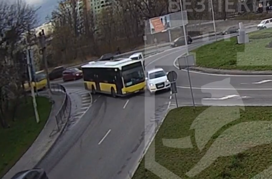 ДТП з автобусом і автомобілем на вул. Липинського яке потрапило в об'єктиви відеокамер Центру безпеки міста.