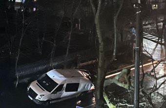 На вулиці Франка у Львові впало дерево на автомобіль. Рух повністю перекрито