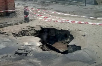 Після прориву труби і сильного протікання на вул. Шумського у Львові утворилося провалля на проїзній частині. Місце обгородили, прорив мережі ліквідовують. Частина вулиць залишилися без водопостачання.