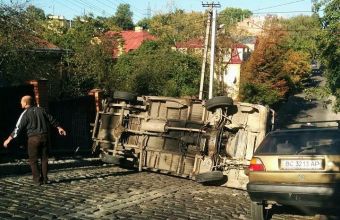 На вулиці Цегельського перекинувся мікроавтобус (оновлено)