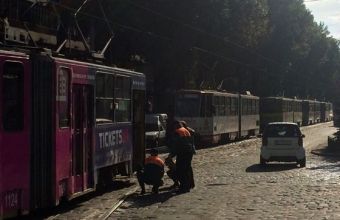 На вулиці Вітовського у Львові зійшов з рейок трамвай