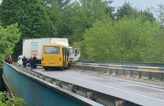 На в'їзді у Дрогобич зіткнулись вантажівка та автобус. Є постраждалі (відео)