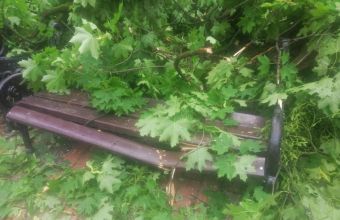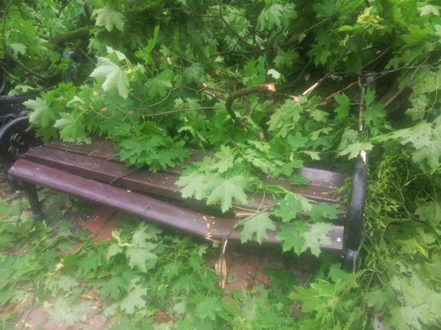 На центральній алеї у парку Франка на лавку впав старий клен.