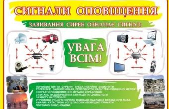 Звучання електросирен означає сигнал «Увага всім!». Почувши його, негайно увімкніть теле- та радіоприймачі (телеканали «1 Західний», «UА:Львів», FM-радіостанції «РадіоПЕРШЕ», «UA:Українське радіо Львів») і прослухайте подальше повідомлення цивільного захисту.