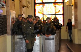Національні гвардійці продовжують оберігати будівлю Львівської міськради від протестувальників (+відео)