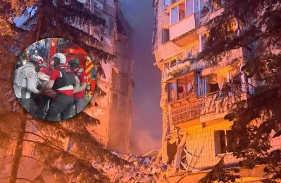 У Солом'янському районі Києва по багатоповерхівці вдарила балістична ракета. Вона фактично пройшла всі дев'ять поверхів зверху донизу. Зараз розбирають завали в житловому будинку.