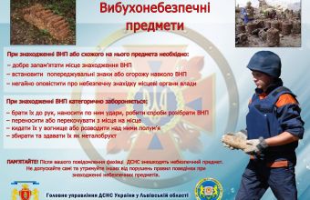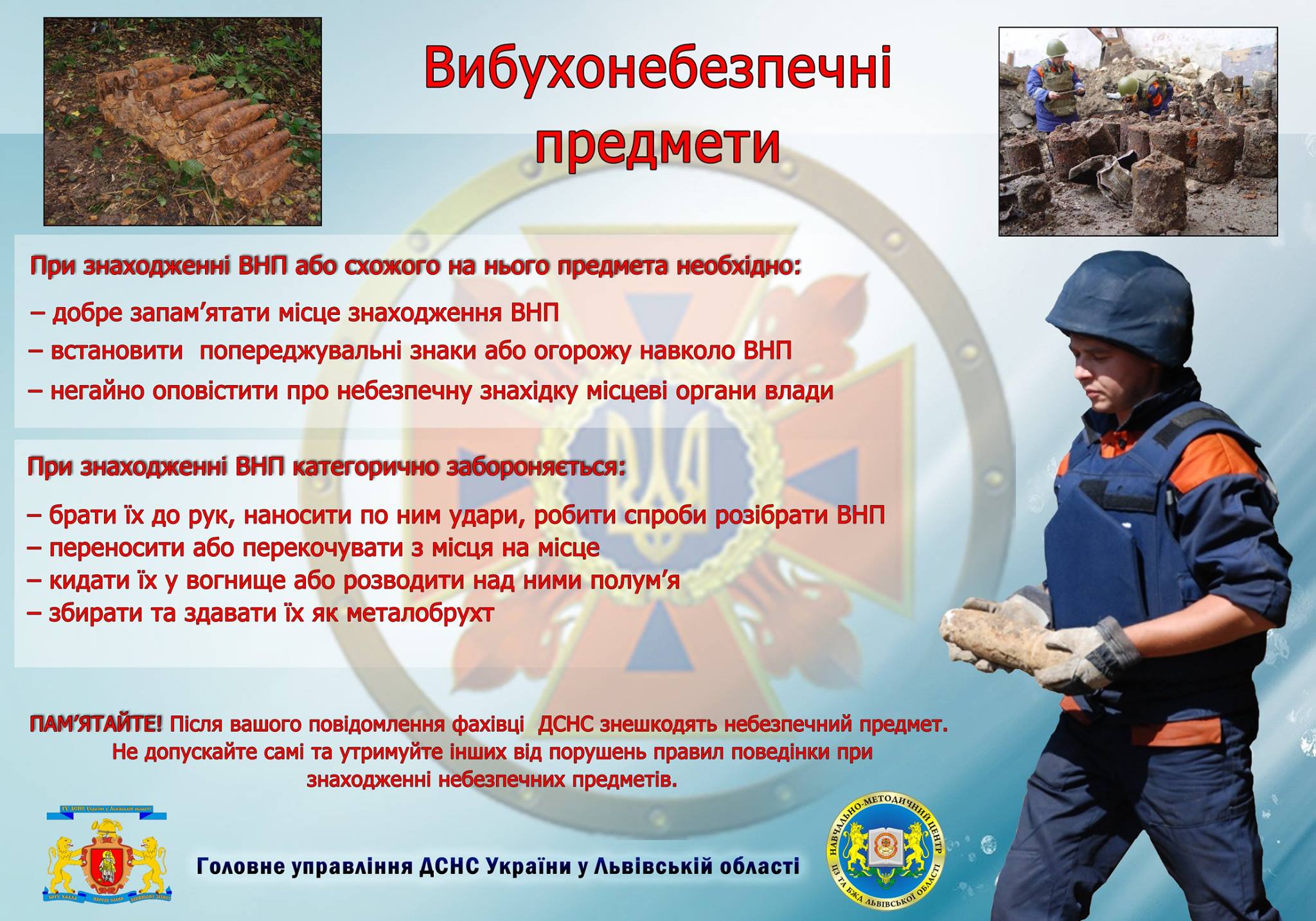 Головне управління ДСНС України у Львівській області застерігає мешканців у жодному разі не рухати підозрілі знахідки. Вони можуть вибухнути, що призведе до Вашого травмування. У разі виявлення боєприпасу чи іншого підозрілого предмету негайно телефонуйте до Служби порятунку за номером 101!».