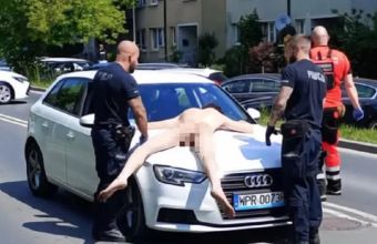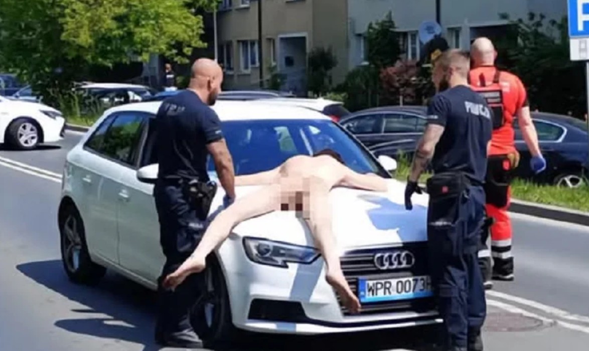 Близько 13 години чоловік вже був на вулиці Szkolna. Він був абсолютно голий і застрибнув на капот автівки, що рухалася. Свідки розповідали, що перед цим громадянин України кричав на дітей на стадіоні поруч.
