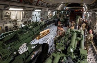 Міністерство оборони США офіційно повідомляє, що «155-мм буксировані гаубиці M777 безпечно закріплені для транспортування до України льотчиками Повітряних Сил США в рамках безпекової допомоги США.