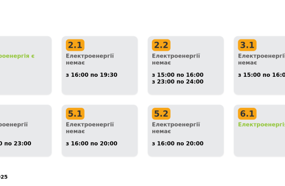 Група 5.1. Електроенергії немає з 16:00 до 20:00.