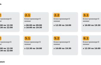 Група 2.1. Електроенергії немає з 06:00 до 09:00, з 16:00 до 19:30.