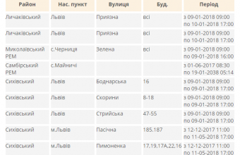 У прес-службі «Львівобленерго» повідомили, що, зокрема, у Сихівському районі Львова обленерго знеструмило у вівторок, 9 січня, до 17:00 для безпечного проведення ремонтних робіт будинки №16 на вулиці Боднарській, №№8-18 на вулиці Скорини й №№47-55 на вулиці Стрийській, а у Франківськ ому районі Львова – будинки №№67-69, №71, №114 та №№№№73-77 на вулиці Княгині Ольги й №30а на вулиці Науковій. Натомість до 17-ї години 10 січня обленерго знеструмило у Личаківському районі Львова вулиці Вовка, Подолинського й Приязну, а також будинки №№1-11, №№1-36 та №№24-32 на вулиці Богданівській і №№90-94 на вулиці Дорога Кривчицька.
