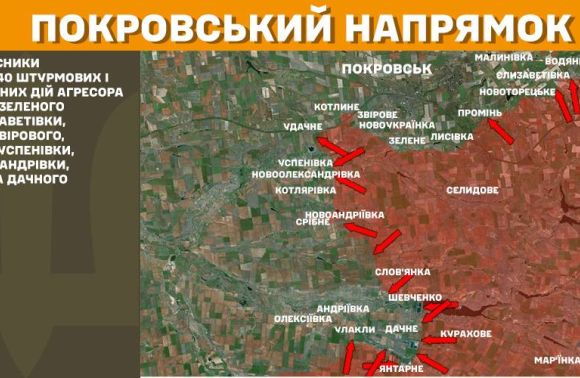 На Покровському напрямку наші захисники зупинили 40 штурмових і наступальних дій агресора в районах Зеленого Поля, Єлизаветівки, Променя, Звірового, Удачного, Успенівки, Новоолександрівки, Срібного та Дачного.