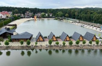 Земельну ділянку з водоймою площею 4,5 га у Брюховичах з 2015 року орендувала Альбіна Савчук для влаштування зони відпочинку, що належить до земель рекреаційного призначення, з яких 0,03 га – для обслуговування кафе. Жодних рішень щодо зміни цільового призначення частини спірної земельної ділянки на землі житлової та громадської забудови місцевою радою не приймалось. В результаті, окрім кафе, навколо озера збудували багатоповерховий готельний комплекс та колиби впритул до води. Право власності на нерухомість зареєстрували вже згодом без належних дозволів.