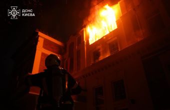 Внаслідок падіння уламків сталося займання на четвертому поверсі чотириповерхового будинку в Подільському районі столиці. Екстрені служби прямують на місце. До медиків наразі ніхто не звертався.