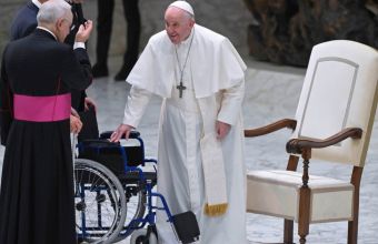 Під час нещодавнього візиту до Канади Папа Римський щодня користувався колісним візком. Повернувшись з виснажливої подорожі, у середу Франциск прийшов на загальну аудієнцію, спираючись на палицю.