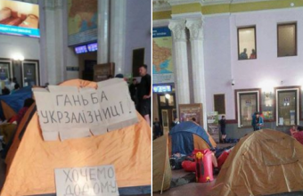 На сторінці ГО «Варта 1» в інтернет-мережі «Facebook» повідомили в неділю, 19 серпня: «Вередині вокзалу люди вночі розклали намети. Люди їхали з Івано-Франківська, потяг запізнився на дві години, через що вони не встигли на свій потяг на одну годину, щоб потрапити додому. Залізниця їм відмовляє обміняти квитки».
