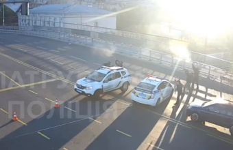 Патрульна поліція виставила відео про те, як її працівники сьогодні, 17 жовтня, збивали дрони в Києві.