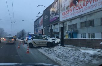 Патрульна автівка не розминулася з рекламним щитом у Львові