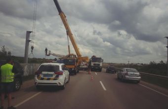 Водії кранів заблокували рух на дорозі «Західний обхід Львова», встановлюючи рекламну конструкцію.