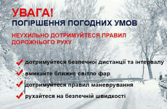 В управлінні патрульної поліції Львівської області опублікували рекомендації «Як уникнути аварійних ситуацій під час погіршення погодних умов у наступні кілька днів».