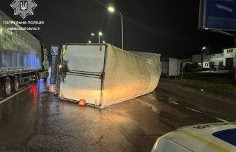 Біля населеного пункту Малехів вантажівка лягла на бік.
