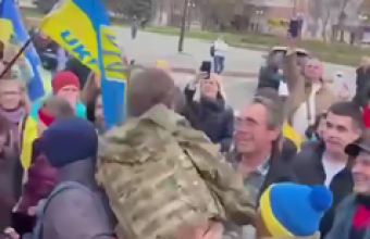 У соціальних мережах постять відео зустрічі у звільненому Херсоні українських військових і підняття прапорів над головними державними установами міста.