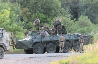 Колона військової техніки дійшла надвечір 12 липня до Мукачева. БТРи, «Кугуари» та вантажівки зупинилися в селі Лавки.