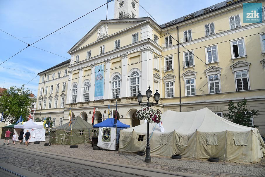 «Представники громадських організацій «Розвиток громади», «Українська спілка учасників АТО», «Рабів до раю не впускають», ВПВ «Патріот», Нацкорпус Львівщини встановили наметове містечко на Площі Ринок. За словами голови ГО «Рабів до раю не пускають» Івана Спринського, метою акції є також встановлення причини зникнення коштів комунальних підприємств, відсутності аудиту, виділення коштів російським олігархам, зокрема, Чуркіну та відставка Андрія Садового», – повідомили також на порталі оперативних новин.