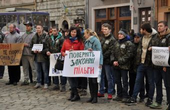 20 березня біля Львівської міської ради пікетували пільговики та громадські активісти вимагали від влади скасувати рішення «Про тимчасове встановлення часу дії посвідчень пільгових категорій пасажирів у міському автотранспорті». Кілька тижнів тому тому Львівська міська ради прийняла рішення про обмеження часу проїзду пільговиків до шести годин на день – з 10.00 до 16.00.