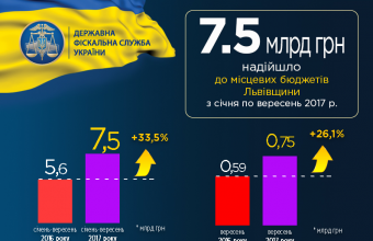 В обласному управлінні ДФС запевнили: «Платники податків Львівщини забезпечили за дев’ять 2017 року надходження податкових платежів до місцевих бюджетів на суму сім мільярдів 459,1 млн. гривень, що на 338,2 млн. гривень або на 4,7% більше показника бюджетного розпису, затвердженого місцевими радами».
