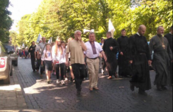 Вулицею Листопадового Чину прямує до проспекту Свободи колона учасників акції за мир.