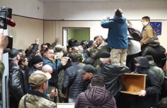 Поліціянти силою зачистили зали засідань Святошинського райсуду Києва, де забарикадувалися прибічники оунівця Миколи Коханівського.