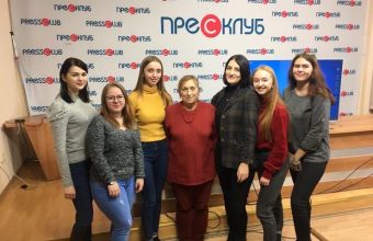 Ірина Бекешкіна зі студентами у Львівському пресклубі, 11 листопада 2019 року.