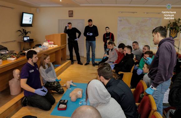 Загалом, вже понад 100 патрульних пройшли повторний курс домедичної допомоги. Про це повідомили сьогодні, 7 лютого, на сторінці управління патрульної поліції Львова в інтернет-мережі «Facebook», де також опублікували фоторепортаж з курсів.