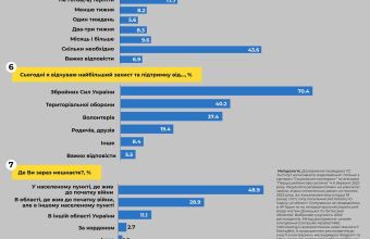 Більше 43% респондентів готові довго терпіти незручності та проблеми, пов’язані з війною, щоб забезпечити мир на умовах України.