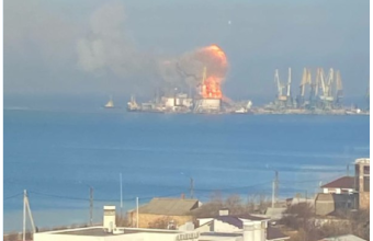 Сьогодні, 24 березня, вранці в порту Бердянська зафіксовано вибухи, горять цистерни з паливом. раблі.