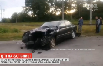 Про це повідомила в четвер, 11 липня, «Телевізійна служба новин» каналу «1+1», де також розповіли: «У районі Новоград-Волинського на Житомирщині «Мерседес» перетинав залізничний переїзд на заборонений сигнал і не встиг переїхати колію, як у нього врізався пасажирський потяг. «Інтерсіті» їхав із Києва до Львова».