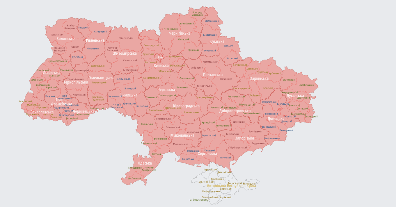 Повітряна тривога лунає в усій Україні. Крім Криму