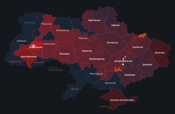 Про це DailyLviv.com повідомляє з покликанням на карту повітряних тривог. Групи БпЛА на Тернопільщині у напрямку Львівщини через Івано-Франківщину, повідомили Повітряні Сили ЗСУ о 3.43.