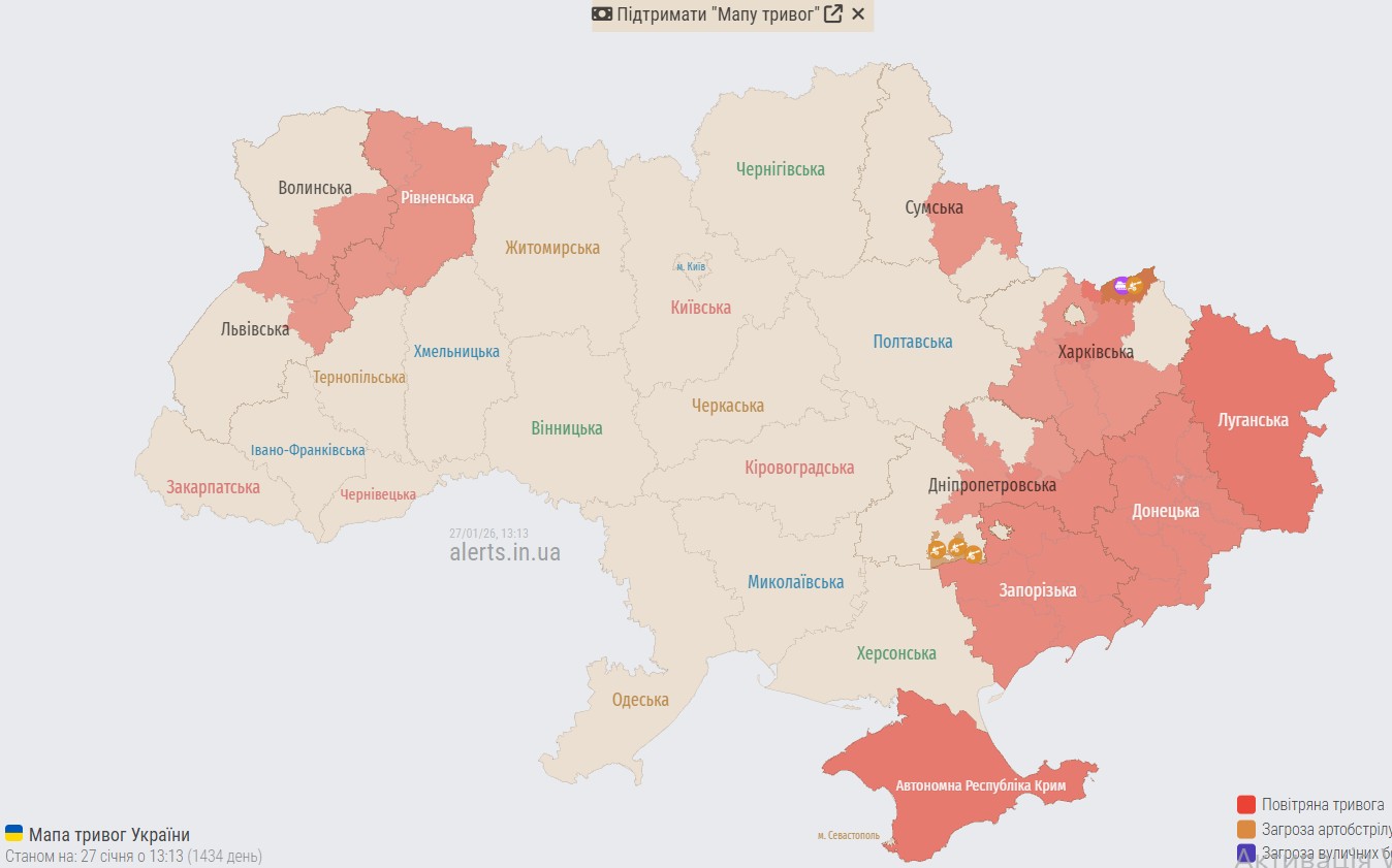 Про це пише DailyLviv.com з покликанням на карту повітряних тривог.