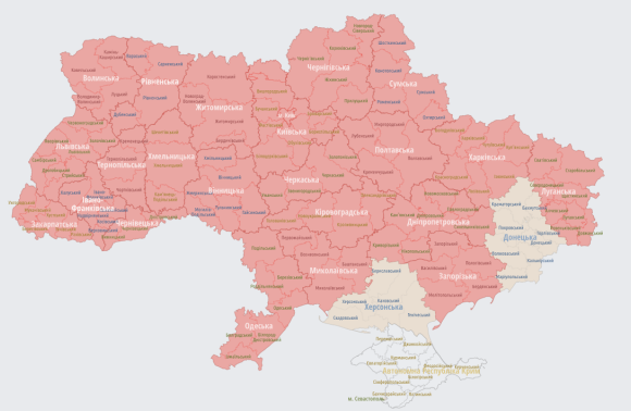 Сьогодні, 14 квітня, орієнтовно о 22 годині оголосили повітряну тривогу майже в усіх областях України, крім двох - Херсонській і Донецькій.