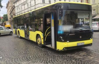 Патрульні, які приїхали на місце події, оформили матеріали розшукової ДТП. В автобуса від удару деформувалися середні двері та розбилося скло на них.