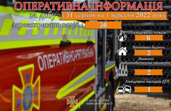 Оперативна інформація щодо реагування підрозділів Головного управління ДСНС України у Львівській області на небезпечні події станом на 08:00 1 вересня.