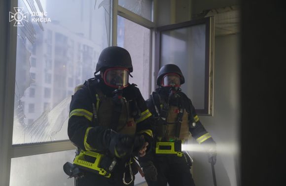 "Одна людина загинула у Києві через масовану російську атаку, - йдеться у повідомленні о 6.36 від Головного управління ДСНС України у Києві. - Шевченківський район: внаслідок влучання уламків БпЛА загорівся балкон на першому поверсі житлової 10-поверхівки. Пожежу на площі 150 кв. м вже локалізовано.
