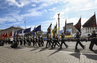 Бійці 24-ї окремої механізованої бригади імені короля Данила на військовому параді в Києві 24 серпня