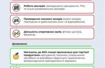 Торговельні заклади, у яких відведено не менше 60% площі під продукти харчування, продовжать свою роботу під час карантину „вихідного дня“.